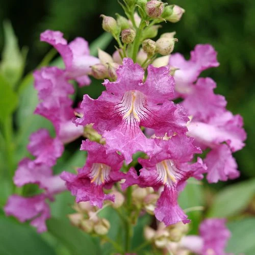 A Proven Winners® ColorChoice® Flowering Shrubs variety, Chitalpa El Niño™ Desert Orchid is a deciduous shrub or miniature tree that blooms in late spring/early summer, continuing sporadically throughout the summer. The fragrant, dark purple, pollinator-friendly flowers look very much like orchids and attract bees to the garden.