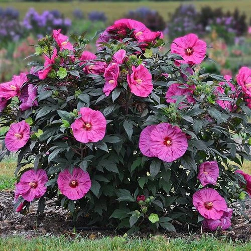 Looking to give your garden a refreshing treat? Try a taste of the tropics with the Hibiscus Summerific® ‘Berry Awesome’. This exotic beauty is sweeter than a fruit smoothie with bold raspberry pink blooms surrounding cherry red eyes and lemon yellow anthers. The sizable magenta blooms reach between 7 and 8 inches across and are further heightened by dense, dark green foliage. This rose mallow performs well in full sunlight as well as partially shaded locations and is quite deer resistant. Hummingbirds can’t get enough of this impressive native and neither will you.