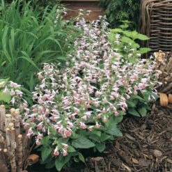 These flowers crowd along slender but sturdy stems among fuzzy mid-green foliage, signaling hummingbirds, bees, and butterflies to come and feast. This plant is just 15 to 20 inches high in bloom and 10 to 15 inches wide, but it gets the job done—lots of flowering stems, always heavily packed with soft pink pastel hues and usually a winged visitor or two, too.