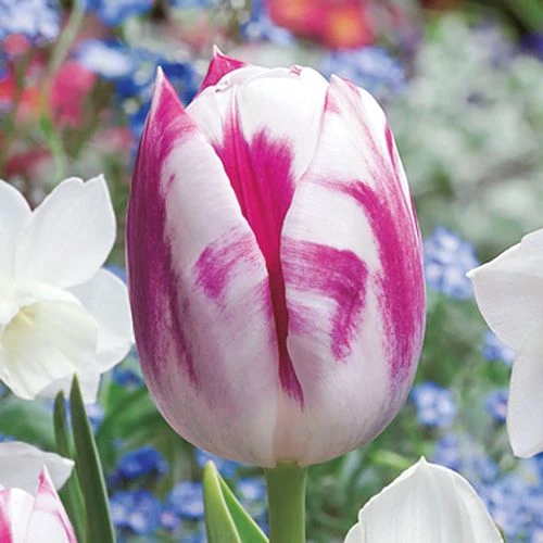Tulip Daffodil Butterfly Kisses Blend is grown on upright, tall stems that make them perfect for cutting. Plant them in mass and you’ll be impressed with the effect. Tons and tons of white and pink variegated blooms will arise at once in spring, sticking around for Easter and through summer. Tulip Daffodil Butterfly Kisses Blend make wonderful arrangements, and are a great gift.